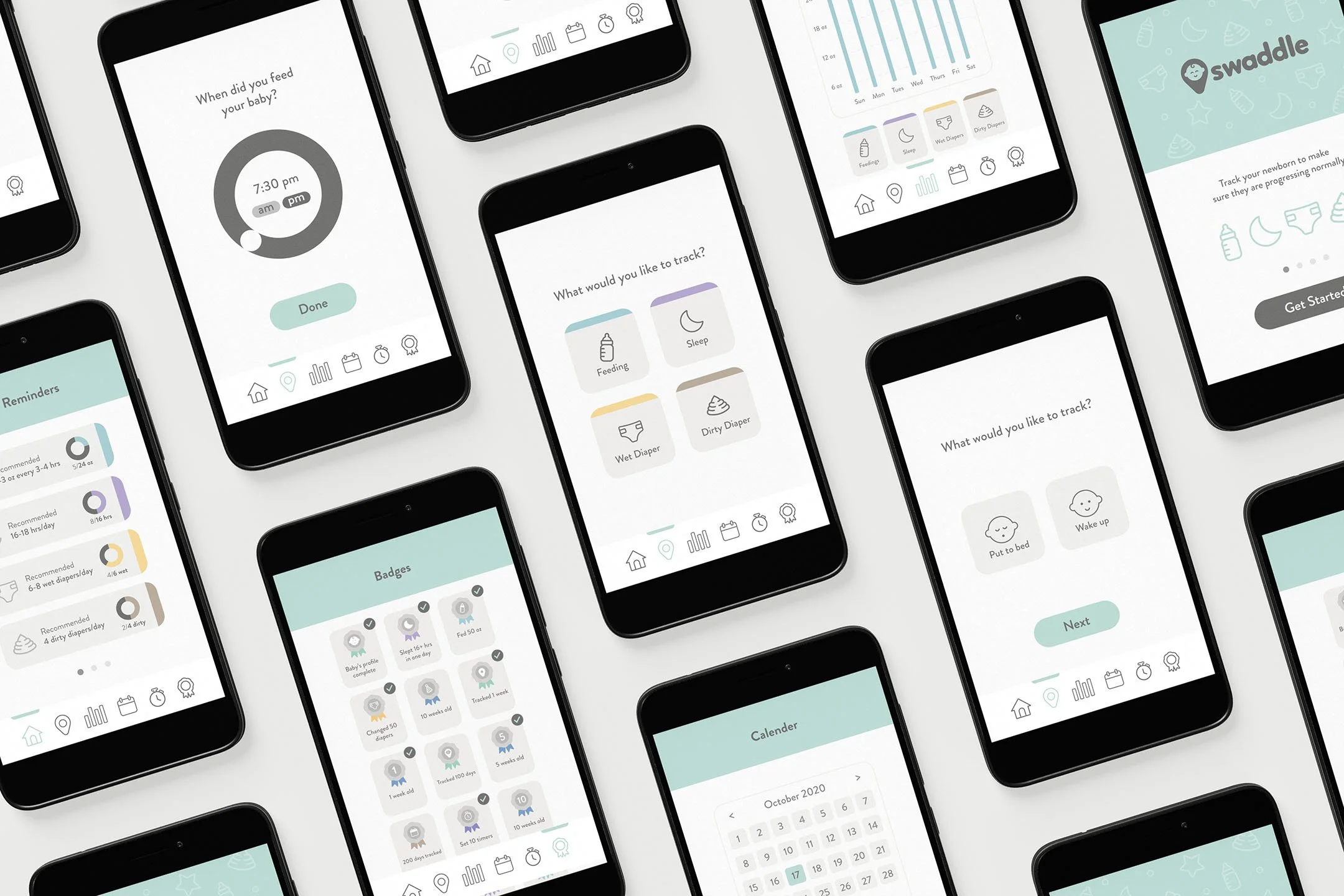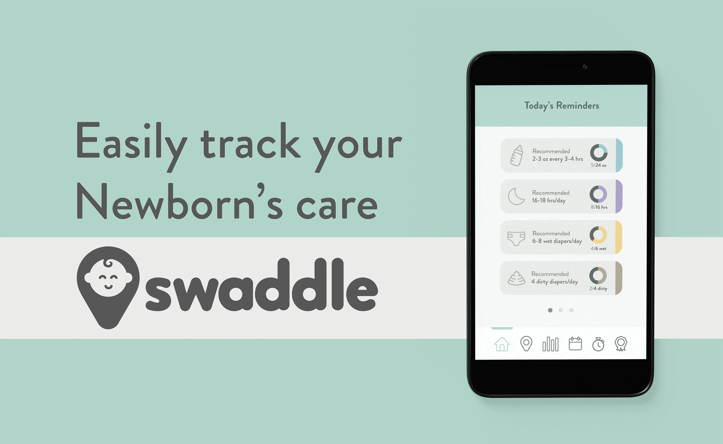 Swaddle is an app designed to help new parents easily track useful information about their newborn. The app provides recommendations for what the normal amount of several key areas are, based on the baby's age.